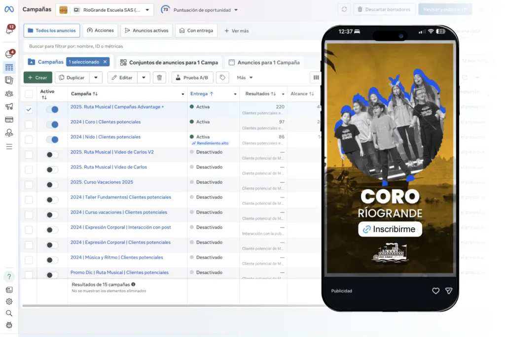 RíoGrande Escuela confió en Hoop Agency para integrar su visión artística con un modelo comercial eficiente. A través de estrategia, tecnología y automatización, construimos un entorno digital que impulsa la captación de estudiantes y fortalece la gestión comercial.